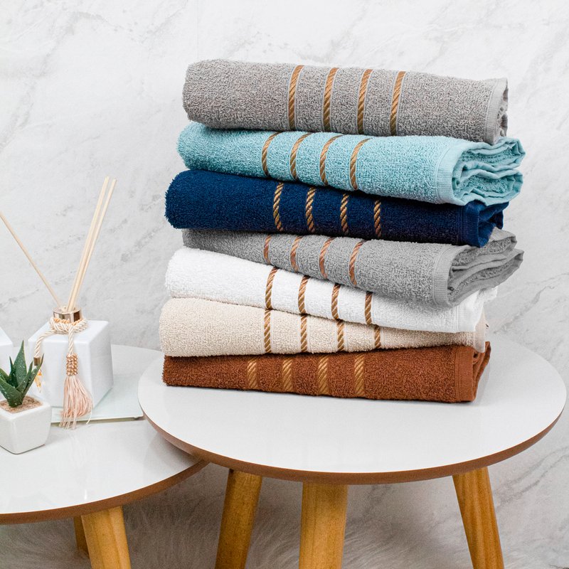 A gramatura das Toalhas de Banho Dubai é de 330 g/m², conforme especificado na descrição do produto. Esta é uma gramatura equilibrada que oferece excelente capacidade de absorção e durabilidade. A densidade do tecido garante absorção eficiente enquanto mantém as toalhas leves o suficiente para uma secagem rápida, ideal para o uso diário.